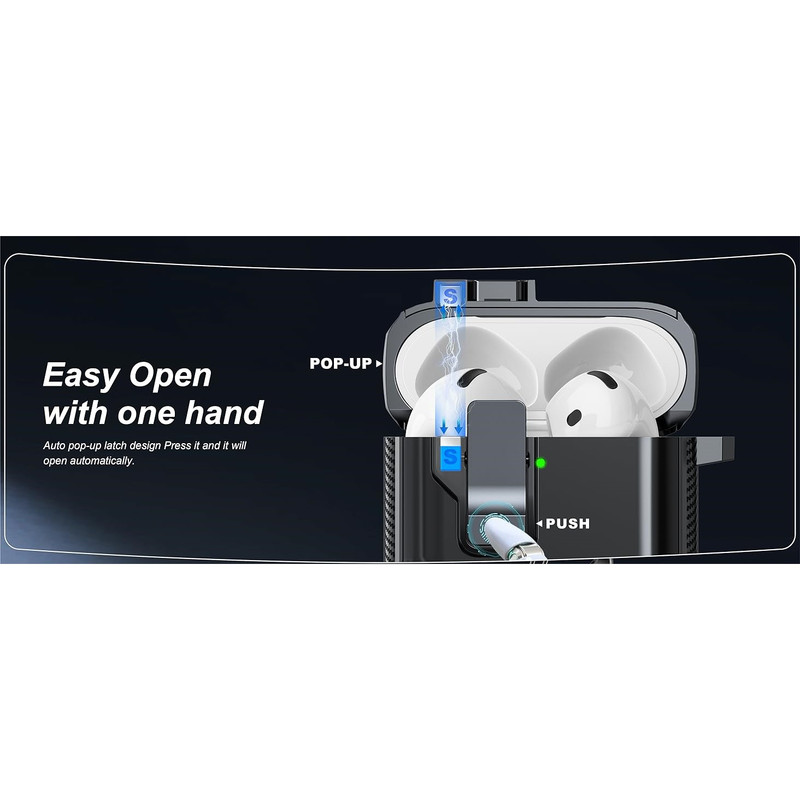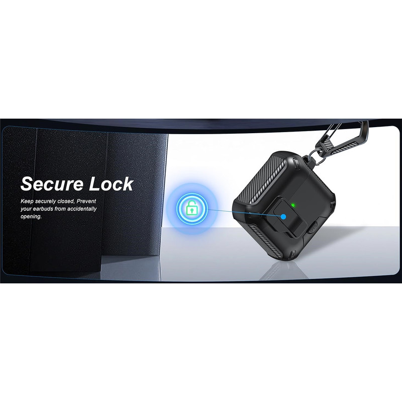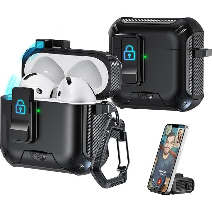 همچنین برای جلوگیری از باز شدن ناگهانی درب ایرپاد و پرتاب شدن گوشی ها به بیرون کیس در قسمت جلوی درب کیس یک گیره با طراحی مبتکرانه تعبیه شده تا هرگز نگران گم شدن گوشی های ایرپاد خود نباشید و در قسمت زیرین کیس هم در پوشی جهت محافظت از درگاه شارژ در برابر گرد و غبار تعبیه شده تا از ورود اجسام خارجی و خاک به داخل درگاه شارژ جلوگیری کند.