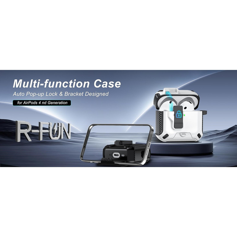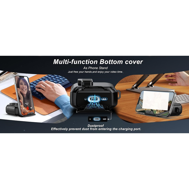 این کاور دارای یک کارابین قابل اتصال به کناره بدنه محافظ بوده و امکان حمل ایرپاد همراه با کلید و کیف دستی را آسان می سازد. میخواهید با گوشی خود فیلم ببینید و نیاز به استند برای گوشی خود دارید؟ کاور دارای استند برای گوشی شماست تا هنگام فیلم دیدن به راحتی گوشی خود را روی استند قرار دهید و از تماشای فیلم خود لذت ببرید.