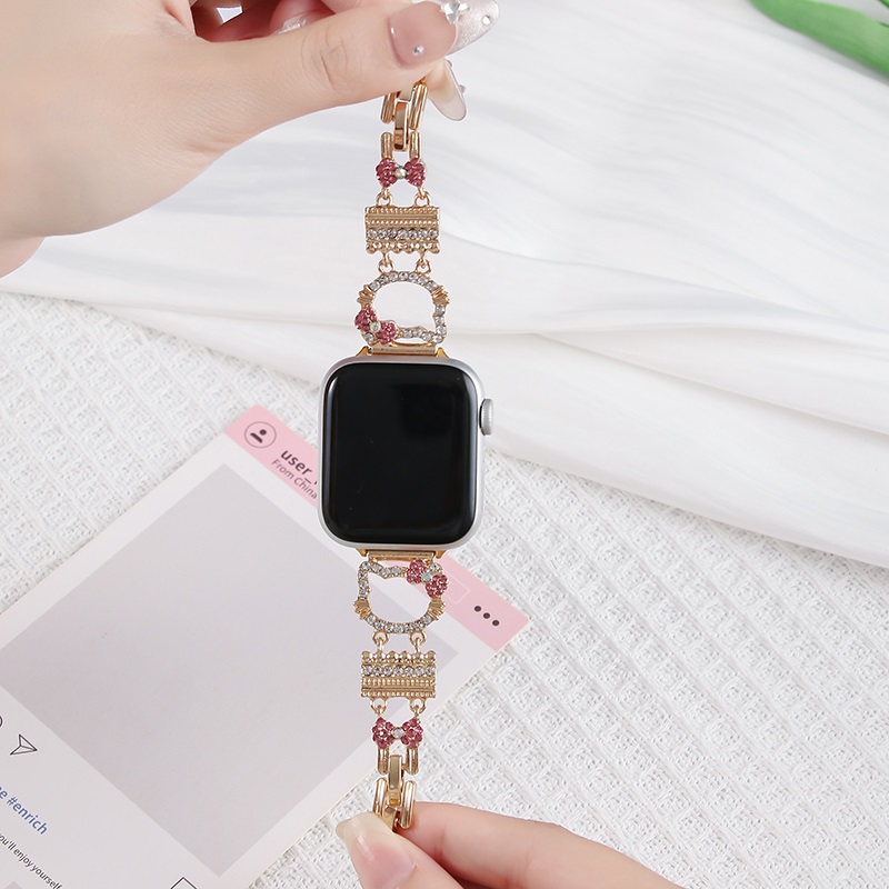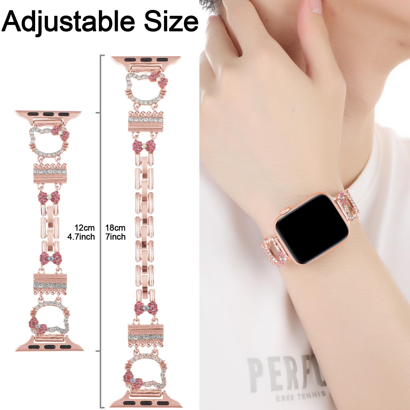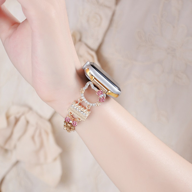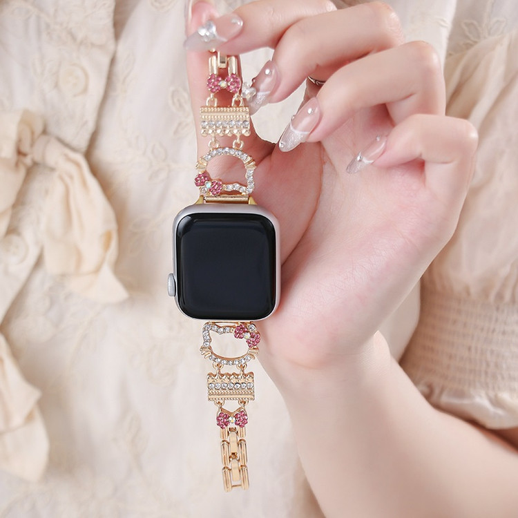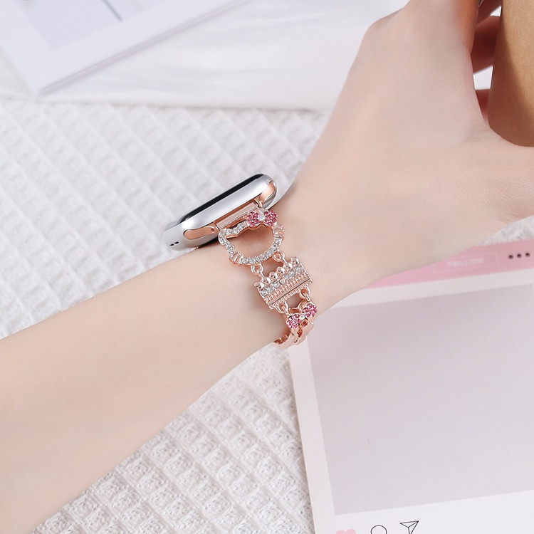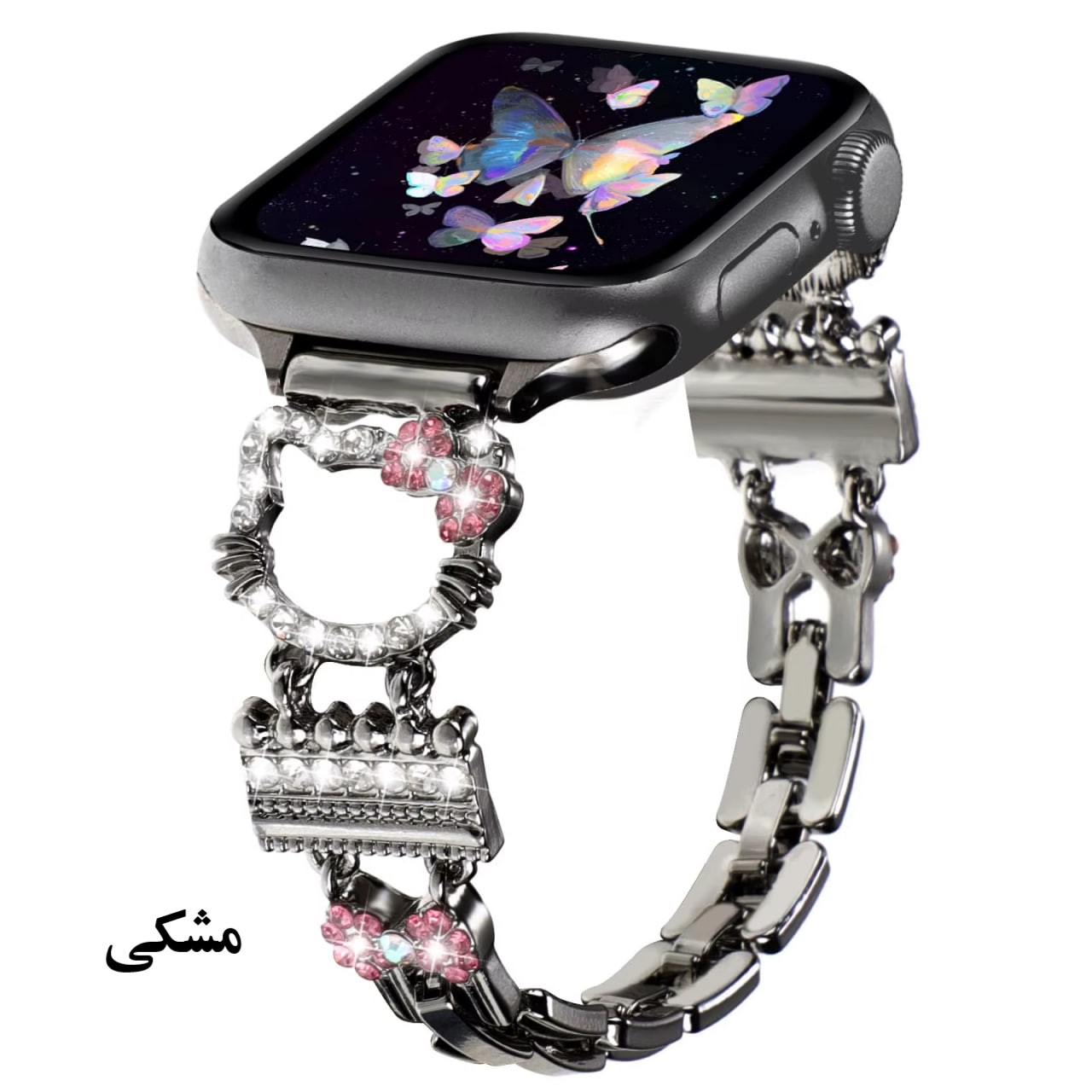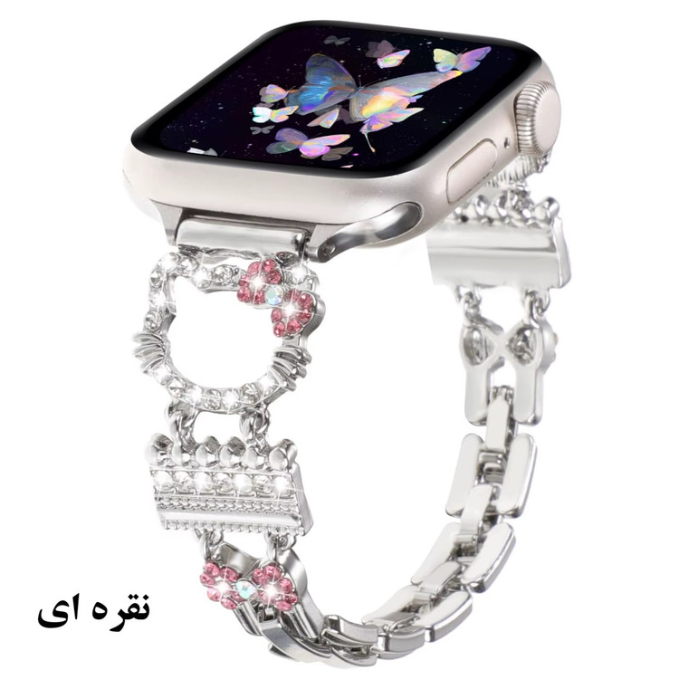 بند استیل نگینی هلو کیتی مدل Hello Kitty مناسب برای اپل واچ