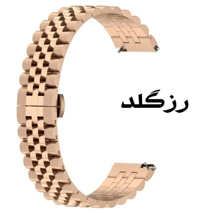 بند رولکسی فلزی مدل Texere 5B مناسب انواع ساعت های هوشمند بوده و هر نوع سلیقه ای را خوشنود و راضی می کند. بند فلزی ضد زنگ و ضد حساسیت آن این اطمینان را به شما می دهد که به مدت طولانی از آن بهره ببرید. برای تغییر بند ساعتتان به راحتی میتوانید پین های بند را باز کرده و بند را جا به جا کنید همچنین به راحتی میتوانید سایز آن را کوچک بزرگ کنید تا به سایز مناسب مچ دست شما برسد. این بند دارای قفل بسیار محکم میباشد که به راحتی باز نمیشود و از شل شدن ساعت دور دست شما جلوگیری میکند. سبک بودن و راحتی بند های Texere 5B از مزایای منحصر به فرد این بند هاست.